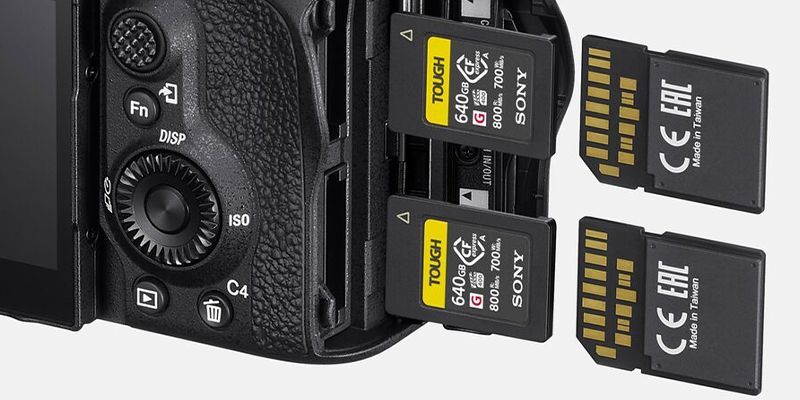 Камера α7R V оборудована двумя гнездами, поддерживающими карты памяти CFexpress Type A, SDXC и SDHC (UHS-I и UHS-II). Возможность быстрой записи на карты Type A позволяет легко обрабатывать большие объемы данных. Съемка поддерживается одновременно на обе карты или поочередно в эстафетном режиме.