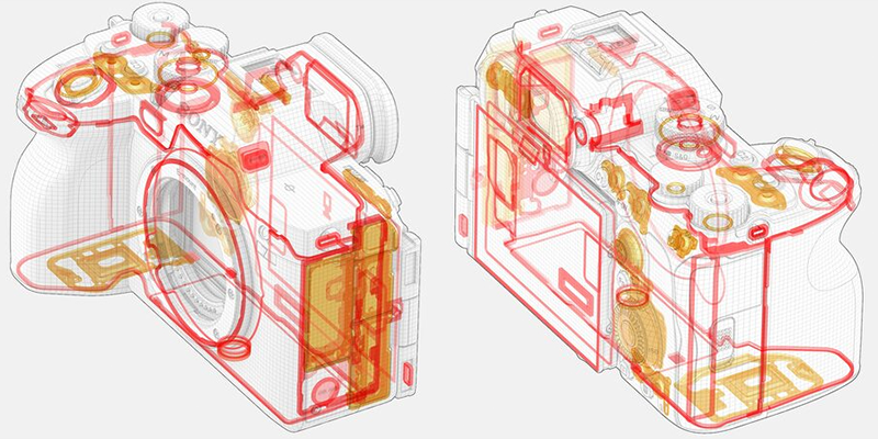 Для надежной работы вне помещения все швы корпуса, кнопки и крышку отсека с аккумулятором герметизированы. Тщательно разработанная кнопка фиксации объектива и амортизирующий материал вокруг крепления также предотвращают попадание пыли и влаги.