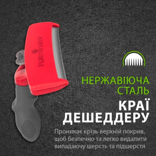Используйте Инструмент против линьки FURminator® согласно рекомендациям по применению. Инструмент против линьки не является расческой или пуходеркой, он зацепляет и вытаскивает слабо прикрепленные, мертвые волоски подшерстка, не срезая и не повреждая остевой волос.