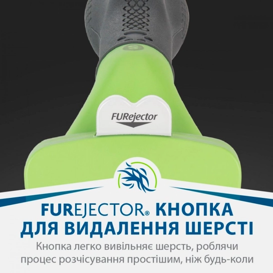- КНОПКА САМООЧИСТКИ FUREJECTOR®. Помогает быстро сбросить шерсть с инструмента, делая процесс вычесывания проще и удобней