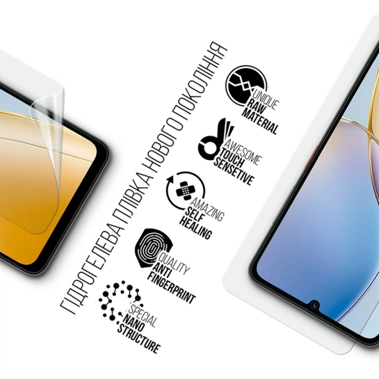 Гидрогелевая плёнка плотно прилегает к поверхности дисплея, повторяя его форму и обеспечивая полное покрытие, включая закруглённые края. Такой материал одинаково эффективно защищает экран при повседневной эксплуатации, сохраняя плавность касаний и точную реакцию на жесты. Особая структура снижает риск появления микроповреждений, а само-восстанавливающийся эффект помогает плёнке оставаться свежей и аккуратной даже спустя длительное время.