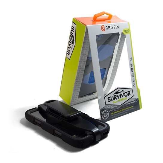 Компания Griffin разработала и выпустила сверхнадёжный и сверхпрочный чехол для IPhone 6. Испытано и сертифицировано чтобы соответствовать или превосходить стандарт 810F Министерство обороны США. Этот чехол защитит Ваш смартфон от различного рода экстремальных условий. Таких как падения и удары, пыль и ветер, дождь и вибрации, и множество других факторов. Чехол изготовлен из четырёх слоёв пенообразного силикона и взрывоустойчивого и армирующего поликарбоната. Защита экрана плотно прилегает к стенкам чехла, что обеспечивает водонепроницаемость. Кнопки управления и порты надёжно защищены, что никак не отразилось на удобстве использования. А для того, чтобы аксессуар было легче переносить, имеется съемная сверхпрочная вращающаяся скрепка, благодаря которой смартфон можно закрепить на поясе или ремешке сумки. Чехлы Survivor протестированы чтобы соответствовать экологическим стандартам.