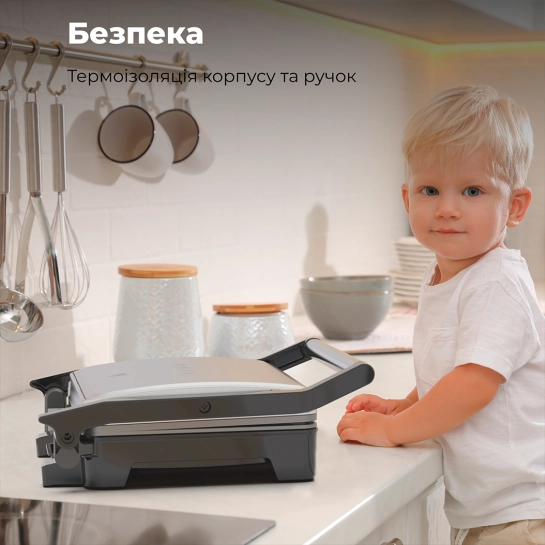 Верхняя крышка гриля и ручки безопасны для прикосновений даже во время работы.