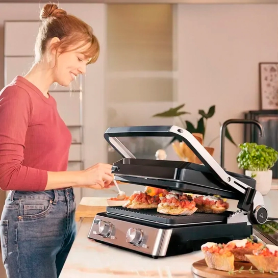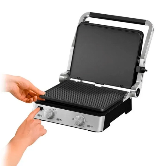 От стейков, рыбы, овощей до кесадильи, панини, блинов или яйц – этот гриль может сделать все. Две пластины с антипригарным покрытием – гриль и плоская – позволяют готовить любое блюдо, в зависимости от ваших кулинарных предпочтений.