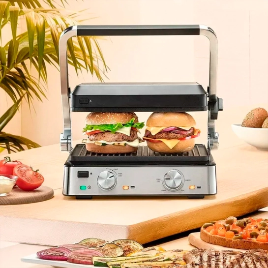 Кроме того, контактное положение осторожно прижимает пищу между пластинами, чтобы свести к минимуму время приготовления.