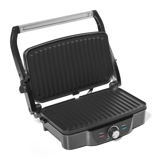 Электрогриль укомплектован двумя рифлеными нагревательными пластинами с антипригарным покрытием, что дает Вам возможность создавать новые кулинарные шедевры. Обе пластины прибора прогреваются равномерно, а благодаря антипригарному покрытию, продукты не прилипают и не пригорают, блюда получаются очень вкусными и сочными, будь то рыба, птица, мясо или овощи. Можно использовать минимум растительного масла или готовить совсем без него.