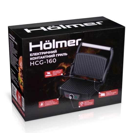 Электрический контактный гриль Hölmer HCG-160 – универсальный и незаменимый ассистент на Вашей кухне. С его помощью можно готовить вкусное барбекю, жарить мясо, сосиски, рыбу или овощи без добавления масла. Все блюда получаются сочными и аппетитными. Удобная и функциональная модель проста в уходе и эксплуатации, имеет 2 рабочих положения, регулятор температуры, мощность 1600 Вт, антипригарное покрытие пластин и съемный поддон для сбора капель жира.