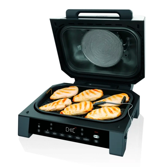 Никаких догадок, готов ли ваш стейк. Технология Smart Cook автоматически контролирует температуру внутри продукта и предоставляет точный уровень прожарки. Хотите medium rare стейк с сочной серединкой? Или well done без пересушивания? Выберите желаемую степень готовности, а умный термощуп сделает все сам. Он точно измеряет температуру внутри мяса, рыбы или курицы, а система Smart Cook регулирует нагрев, чтобы блюда были идеально прожаренными.