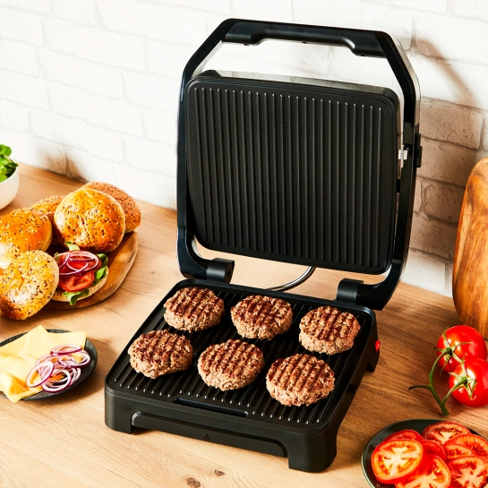 Благодаря мощности 2000 Вт гриль быстро нагревается, чтобы вы с удовольствием готовили вкусные блюда. Хрустящий панини с разнообразными начинками, овощи, рыба или стейки - все это вы сможете легко готовить, когда захотите.