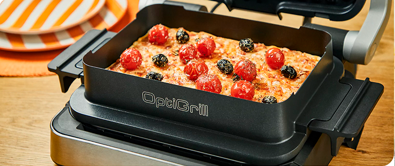 Используйте форму для запекания, чтобы превратить OptiGrill в мини духовку. Приготовьте любимые блюда даже быстрее, чем в духовке: пиццу, гратен, выпечку и даже картофель фри!