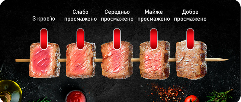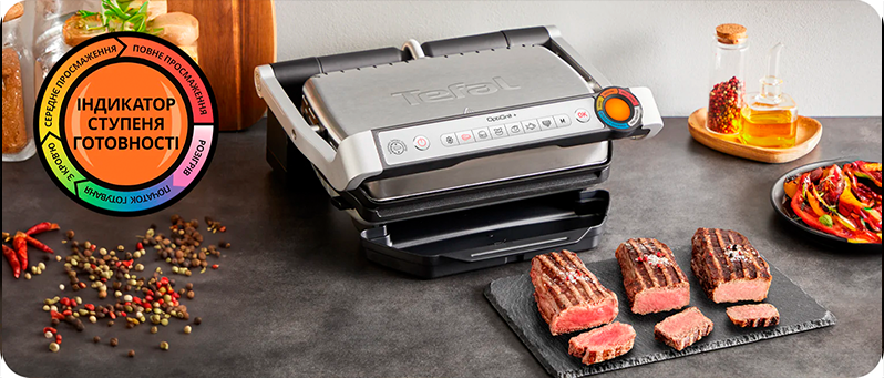 Инновационный подход который использует Tefal каждый раз позволяет приготовить идеальный стейк. Индикатор уровня готовности поможет вам приготовить именно то, что вы хотите. Выберите нужный для вас вариант и наслаждайтесь результатом.