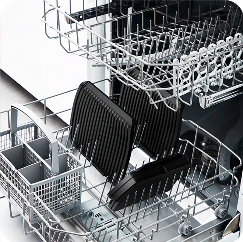 Благодаря съемным пластинам избавиться от жира и остатков пищи - просто.