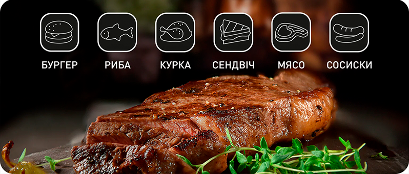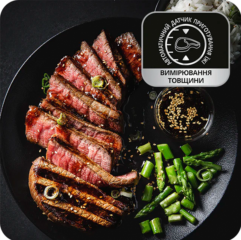 Гриль автоматически определяет толщину продукта и самостоятельно подбирает настройки для его приготовления.