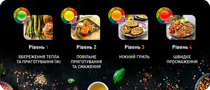 Ручной режим выбора температуры имеет 4 уровня, которые предназначены для разных блюд.