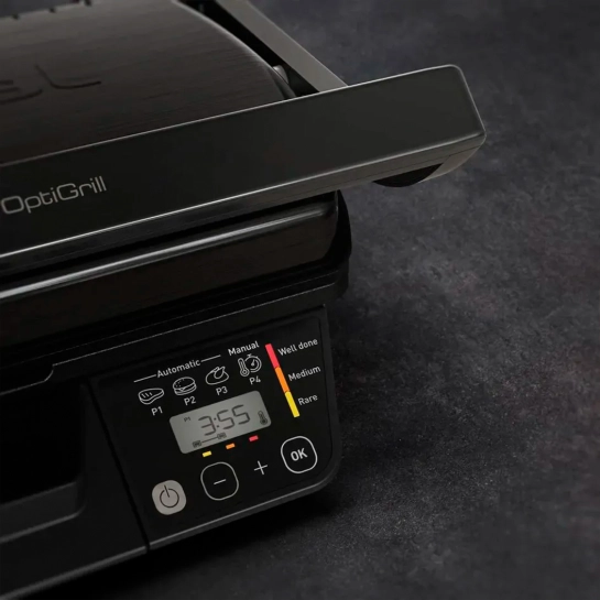 OptiGrill измеряет толщину ваших блюд с точностью до миллиметра, учитывает количество кусочков и автоматически регулирует время приготовления – для гарантированного идеального результата, от rare до well-done!