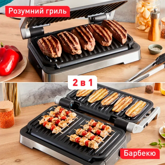 Умный гриль и режим Барбекю. Автоматическое измерение порции и толщины. Новый дизайн индикатора уровня приготовления.