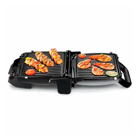 Электрогриль незаменим, когда нет возможности выехать на пикник, из-за отсутствия времени или из-за плохой погоды. Прибор позволяет жарить продукты, прямо не выходя из дома. А благодаря двум положениям, модель GC305012 можно использовать, как гриль, и как барбекю (раскладывается на 180 градусов). Одновременно жарить овощи на одной стороне, а мясо на другой.