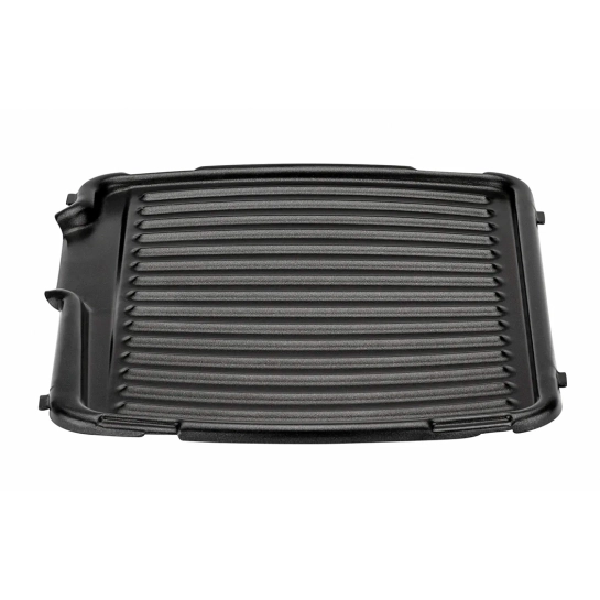 Ребристая конструкция нагревательных панелей из литого алюминия способствует удалению излишков жира с продуктов, который стекает в специальный поддон, что позволяет готовить аккуратно и не теряя сочности продукта. Пластины изготовлены из высококачественного материала с антипригарным покрытием, поэтому при приготовлении мясо, рыба и овощи не подгорают.