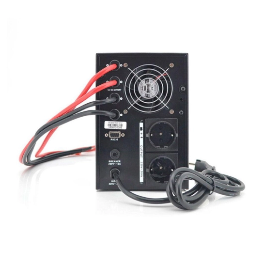 Фронтальная панель ИБП оснащена LCD-дисплеем, отображающим ключевые параметры: входное/выходное напряжение, уровень заряда аккумулятора, нагрузку и режим работы. Это позволяет пользователю контролировать работу устройства без необходимости подключения к дополнительному ПО. Встроенный порт RS-232 обеспечивает базовую интеграцию с компьютером или сервером для удалённого мониторинга и настройки.
