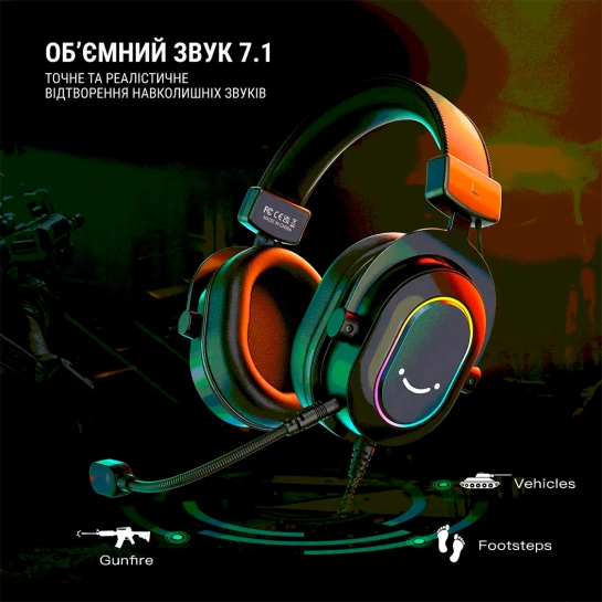 Углубите атмосферу своей игры благодаря яркой RGB подсветке игровой гарнитуры. Это свойство придает эстетическому цвету вашему игровому опыту, создавая увлекательную визуальную палитру, отображающую ваше настроение и атмосферу игры.