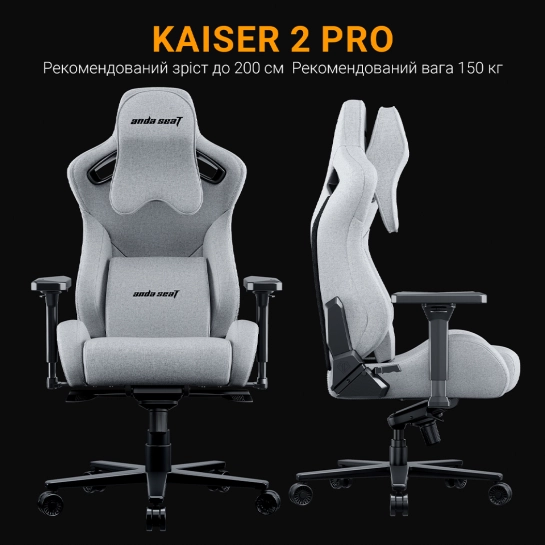 Игровое кресло Anda Seat Kaiser 2 Pro XL Grey Fabric