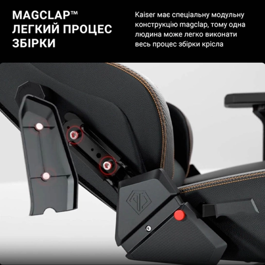В отличие от других игровых кресел Anda Seat Kaiser 3 имеет специальную модульную конструкцию MagClap, которую можно легко собрать. Просто вставьте спинку в основание сиденья, затем зажмите магнитные боковые крышки с обеих сторон. Лишь один человек может с легкостью завершить весь процесс сборки. Всего за несколько минут ваше идеальное игровое кресло готово к борьбе с вами!