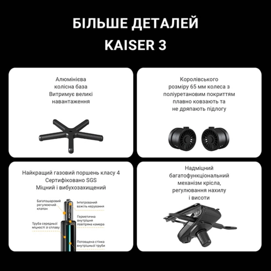 Kaiser 3 был переделан для поддержания оптимальной эргономики, а более плоские крылья сиденья обеспечивают удобное основание сиденья без ощущения ограничений. Kaiser 3 будет доступен в двух размерах (L и XL), предлагая комфортные и просторные сиденья.