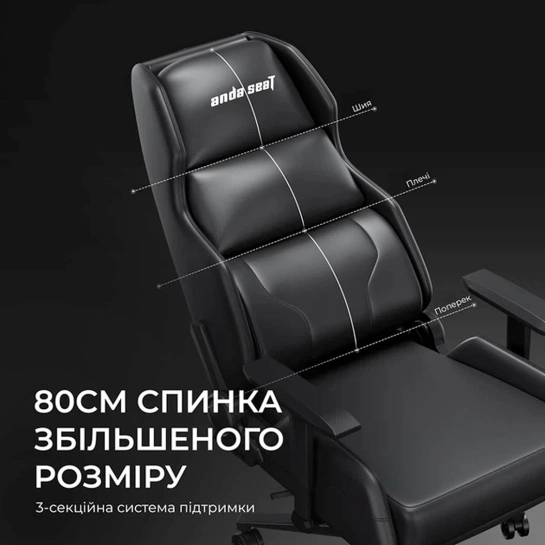 Anda Seat X1 оснащено экстра-высокой спинкой высотой 800 мм, что обеспечивает комфорт пользователям разного роста. Трёхсекционная система поддержки охватывает поясницу, плечи и голову, снижая нагрузку на позвоночник и способствуя правильной посадке. Регулируемый наклон до 135° позволяет комфортно расположиться как для динамичной игры, так и для расслабленного отдыха.