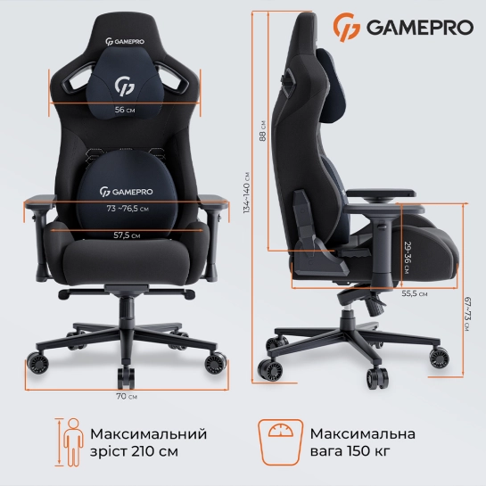 Характеристики для Игровое кресло GamePro GC900B Fabric Black