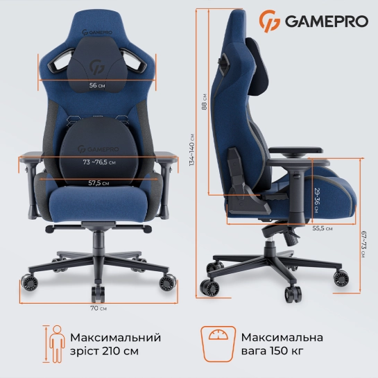 Характеристики для Игровое кресло GamePro GC900DB Fabric Dark Blue