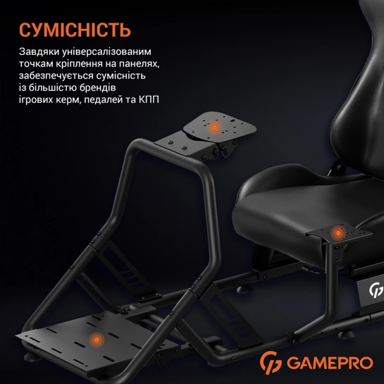 Gamepro RS100 – это игровое кресло кокпит, обеспечивающее комфортное использование для геймеров благодаря регулируемым креплениям для руля, педалей и КПП. Благодаря широкому выбору креплений, этот кокпит совместим с большинством брендов игровых комплектующих – Fanatec, Logitech, MOZA, Tustmaster. Это делает его универсальным решением для любого этапа. Изготовленный из прочной стали, Gamepro RS100 обладает высокими эксплуатационными характеристиками, которые придают еще больше надежности и долговечности.