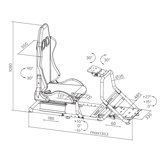 | Регулировки: | Угол наклона спинки, Глубина сидения, Угол наклона крепления КПП, Расстояние крепления КПП, Угол наклона крепления руля, Угол наклона крепления педалей |