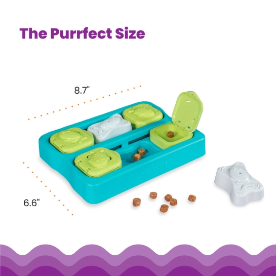 Независимо от того, используете ли вы пазл во время игры или как кормушку для замедленного кормления, Catstages Nina Ottosson Kitty Cube Puzzle с 10 скрытыми отсеками вмещает 3\4 стакана сухого корма (приблизительно 75–90 г) и делает ежедневный приём пищи более увлекательным.
