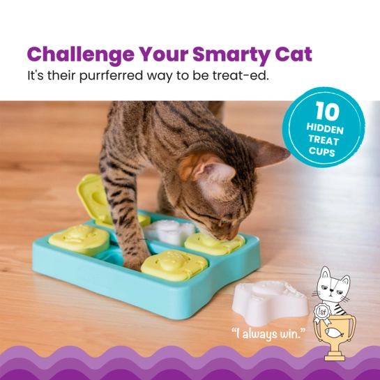 Эта игра развивает интеллект, логическое мышление и способность решать задачи, помогая кошке оставаться активной и сосредоточенной.