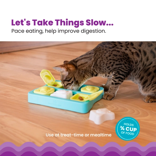 Пазл помогает замедлить поедание корма, улучшает пищеварение и общее самочувствие кошки.