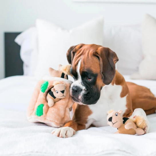 Эта мягкая плюшевая игрушка-головоломка идеально подходит для совместной игры с питомцем — когда ваш любимец вытащит всех белок, просто положите их обратно в ствол плюшевого дерева и начните новую игру!