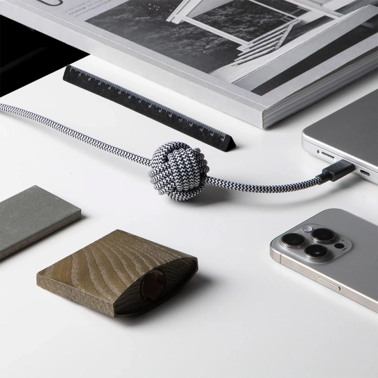 Для поддержания порядка и хорошего состояния кабеля просто оберните его встроенным натуральным кожаным ремешком. Проведите ремешок вдоль кабеля в любом месте для удобства переноски.
