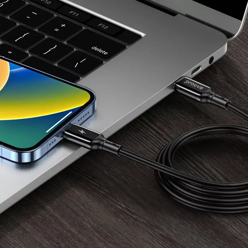 Кабель Proove Flex Metal имеет коннектор Lightning, который позволяет подключать к питанию любой гаджет Apple: iPhone, AirPods, MacBook. Вам достаточно вставить устройство в розетку и подключить соответствующий кабель к устройству.