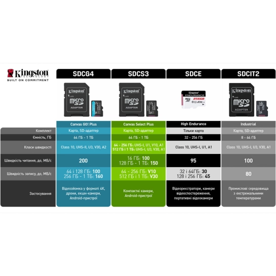 Характеристики для Карта памяти Kingston microSDXC 64GB Canvas Select Plus Gen3 A1 Class 10 + adapter (SDCS3/64GB)