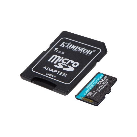 Карта памяти Kingston microSDXC 512GB Canvas Go! Plus G4 Class 10 UHS-I U3 V30 A2 + SD-адаптер (SDCG4/512GB)
