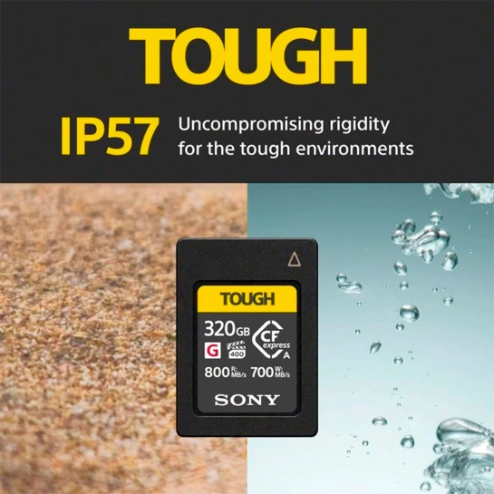 Предлагая прочность и скорость, карта памяти CFexpress Type A TOUGH емкостью 320 ГБ от Sonyобеспечивает высокую скорость чтения до 800 МБ/с и скорость записи до 700 МБ/с. Эта высокая производительность дает преимущества при записи видео с различными разрешениями, битрейтами и сжатием, а также при непрерывной фотосъемке в формате RAW с высоким разрешением.