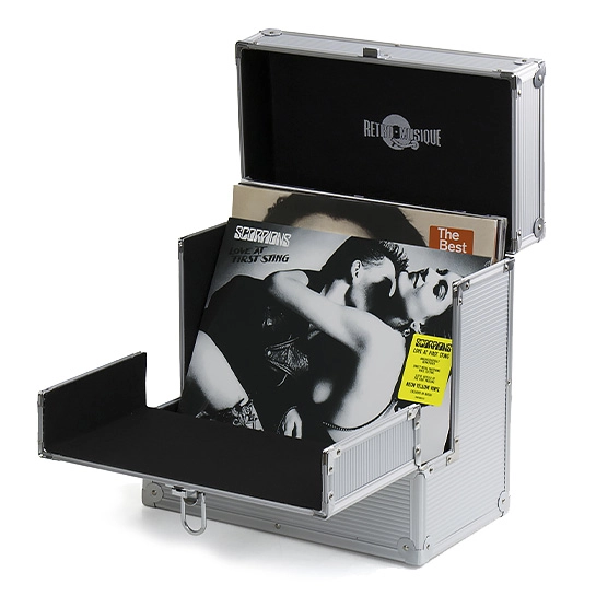 Храните вашу коллекцию 12-ти дюймового винила в алюминиевом кейсе Retro Musique. Кейс вмещает 40 пластинок. Retro Musique Case выполнен из прочного, но легкого материала, благодаря чему пластинки будут надежно защищены от внешних повреждений, а транспортировать их на вечеринку будет более чем комфортно. Передняя стенка бокса раскладывается для удобства поиска нужной вам пластинки, при этом не сгибая верхнюю часть конвертов.