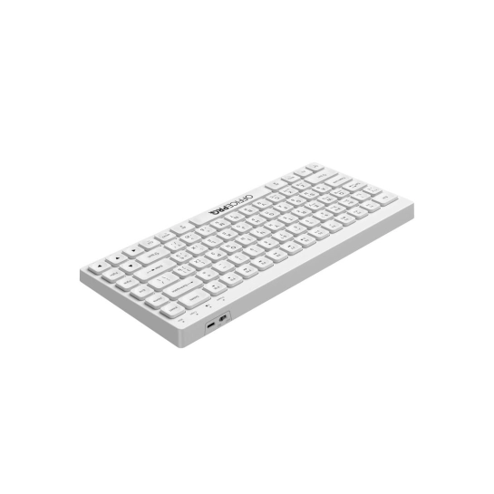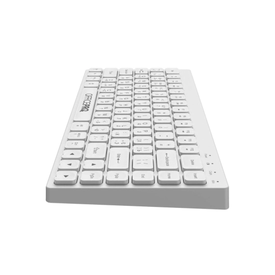 Клавіатура OfficePro SK790W Wireless/Bluetooth White (SK790W) є бездротовою мембранною клавіатурою, яка підключається через Bluetooth або радіо адаптер (Wi-Fi). Вона має стандартну розкладку з підтримкою англійської, російської та української мов. Клавіатура відрізняється ергономічним дизайном і тонким корпусом, не має цифрового блоку. Особливістю цієї моделі є підсвітка клавіш блакитного кольору, а також низький хід клавіш, що робить набір тексту зручним та швидким.