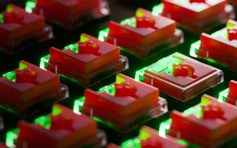 Выполняйте более быстрые нажатия клавиш с помощью совершенно новых переключателей, которые имеют более короткую высоту срабатывания для уменьшения хода клавиш, а срок службы клавиш составляет 70 миллионов нажатий для долговременной работы.
