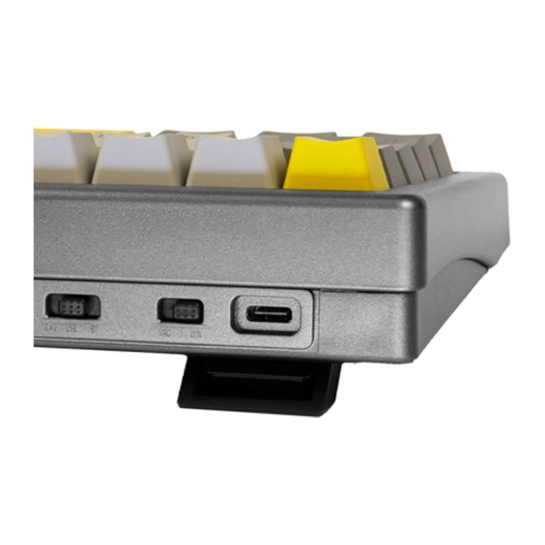 Клавиатура поддерживает три режима подключения — проводное через USB Type-C, беспроводное по Bluetooth, а также радиоканал 2.4 ГГц, обеспечивая универсальность и мобильность. Встроенный аккумулятор ёмкостью позволяет использовать её длительное время без подзарядки.