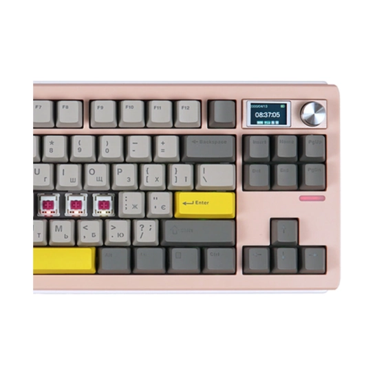 Одной из уникальных особенностей устройства является встроенный функциональный дисплей, а также колёсико регулировки громкости. Клавиши снабжены RGB-подсветкой, включая подсветку символов украинской и английской раскладки. Благодаря поддержке NKRO (полное распознавание нажатий) клавиатура подойдёт для игр и профессиональной работы.