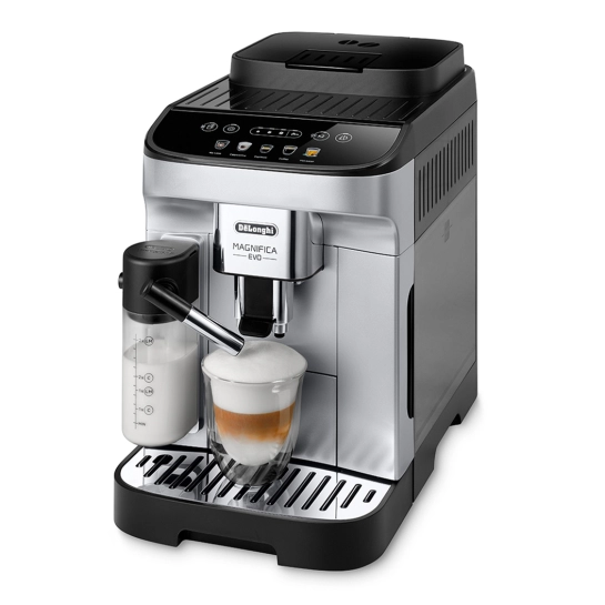 Вариантов приготовления кофейных напитков существует множество и далеко не все их можно реализовать способом ручного заваривания. Для этого, как правило, пользуются кофеварками и кофемолками. Однако, покупка автоматической кофемашины DeLonghi ECAM 290.61 SB Magnifica Evo является гораздо более логичным решением с точки зрения практичности. Это целая многофункциональная система с собственной встроенной кофемолкой с 250 г емкостью для хранения зерен, способной молоть зерна на 13 уровнях по вашему выбору.