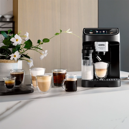 Модель DeLonghi ECAM 320.60 B Magnifica Plus относится к изделиям среднего класса и предоставляет в распоряжение своего владельца широкий ассортимент кофейных напитков. При потреблении в рабочем режиме 1450Вт, она способна за считанные секунды приготовить и разлить по чашкам эспрессо, а также производные напитки и коктейли на его основе. Удобное сенсорное меню с цифровым 3,5-дюймовым дисплеем, интуитивно понятные настройки – здесь все сделано для максимального комфорта пользователя! Система LatteCrema Hot обеспечивает образование так ценимой многими кофеманами молочной пенки. Встроенная кофемолка с возможностью регулировки степени помола поможет в полной мере раскрыть вкус и аромат зерен любого сорта в соответствии с конкретной рецептурой. Более того, вы также можете создать и сохранить в памяти устройства собственные рецепты кофейных напитков. Прибор отключается через заданный промежуток времени, так что вам не придется беспокоиться и об этом.