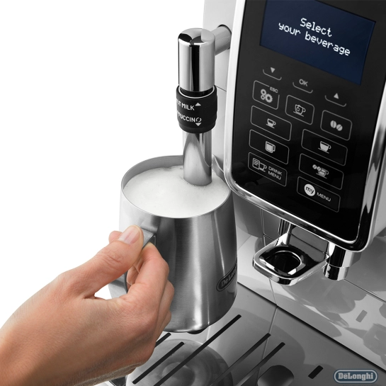 Желаете каждое утро пить различные кофейные напитки? Купить DeLonghi ECAM 350.35 W – обзавестись многофункциональной кофемашиной, которая будет вас баловать любимым кофе и коктейлями с ним. Функция «My menu» позволит вам подобрать параметры приготовления на ваш личный вкус. Если вы любитель капучино, вас, несомненно, порадуют настройки количества молока, плотность пенки и ее текстуру.