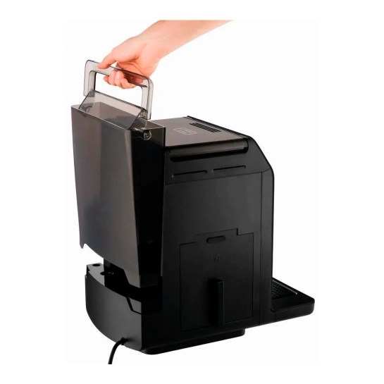 Совершенно новый дизайн подарит незабываемый перерыв на кофе благодаря большой емкости (резервуар для воды объемом 2,3 л и отсек для кофе зерен на 260 г), оптимальным пропорциям и эргономичному корпусу кофеварки.
